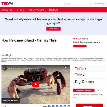 TED-Ed Lesson: Spiders and crustaceans, also known as arthropods, led the charge from water to land--now outnumbering all terrestrial animals. But what about arthropods makes them so adaptable to life on land? Marine biologist Tierney Thys, and Noé Sardet and Sharif Mirshak of the Plankton Chronicle…