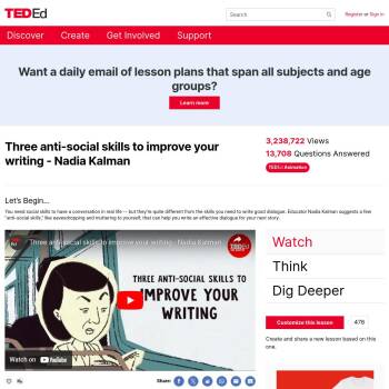 TED-Ed Lesson: You need social skills to have a conversation in real life -- but they’re quite different from the skills you need to write good dialogue. Educator Nadia Kalman suggests a few “anti-social skills,” like eavesdropping and muttering to yourself, that can help you write an effective dial…