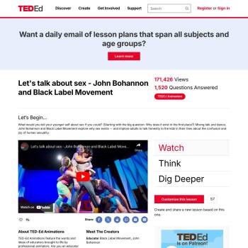 TED-Ed Lesson: What would you tell your younger self about sex if you could? (Starting with the big question: Why does it exist in the first place?) Mixing talk and dance, John Bohannon and Black Label Movement explore why sex exists -- and implore adults to talk honestly to the kids in their lives…