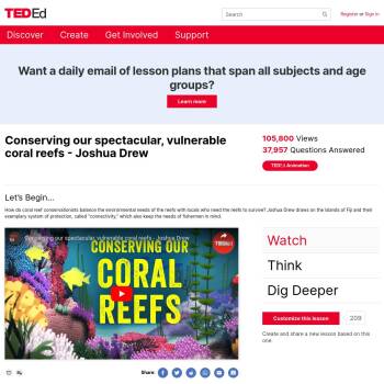 TED-Ed Lesson: How do coral reef conservationists balance the environmental needs of the reefs with locals who need the reefs to survive? Joshua Drew draws on the islands of Fiji and their exemplary system of protection, called “connectivity,” which also keep the needs of fishermen in mind.