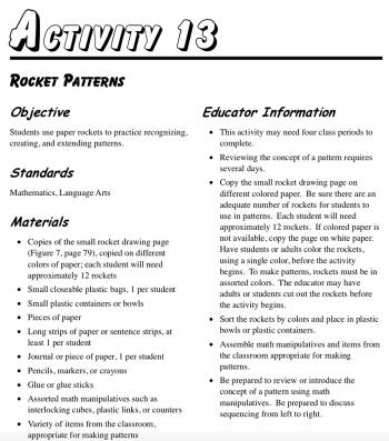 Students use paper rockets to practice recognizing, creating and extending patterns.