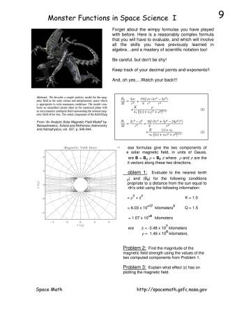Space Math III -- Problem 9, Monster Functions in Space Science I