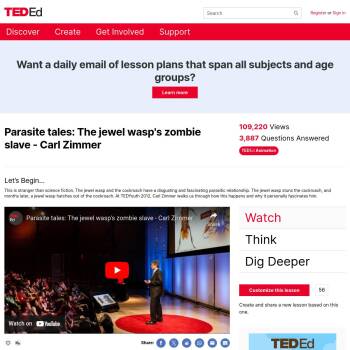 TED-Ed Lesson: This is stranger than science fiction. The jewel wasp and the cockroach have a disgusting and fascinating parasitic relationship. The jewel wasp stuns the cockroach, and months later, a jewel wasp hatches out of the cockroach. At TEDYouth 2012, Carl Zimmer walks us through how this h…