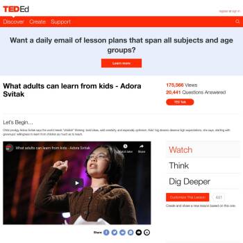 TED-Ed Lesson: Child prodigy Adora Svitak says the world needs “childish” thinking: bold ideas, wild creativity, and especially optimism. Kids’ big dreams deserve high expectations, she says, starting with grownups’ willingness to learn from children as much as to teach.