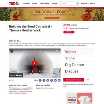 TED-Ed Lesson: A future more beautiful? Architect Thomas Heatherwick shows five recent projects featuring ingenious bio-inspired designs. Some are remakes of the ordinary: a bus, a bridge, a power station ... And one is an extraordinary pavilion, the Seed Cathedral, a celebration of growth and …