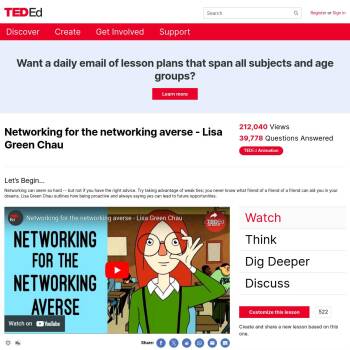 TED-Ed Lesson: Networking can seem so hard -- but not if you have the right advice. Try taking advantage of weak ties; you never know what friend of a friend of a friend can aid you in your dreams. Lisa Green Chau outlines how being proactive and always saying yes can lead to future opportunitieā¦
