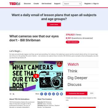TED-Ed Lesson: Our eyes are practically magical, but they cannot see everything. For instance, the naked eye cannot see the moment where all four of a horse’s legs are in the air or the gradual life cycle of plants -- but cameras can capture these moments. Bill Shribman gives examples where pho…