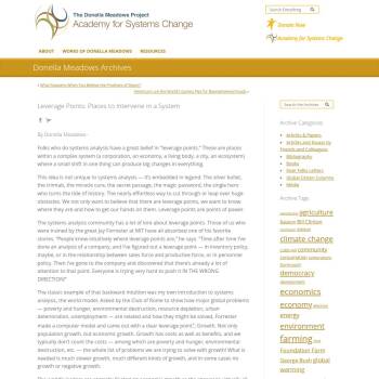 This article by the late Donella Meadows, the American environmental scientist, educator, and writer, sets out a thought-provoking view on how to diagnose and intervene in complex systems.