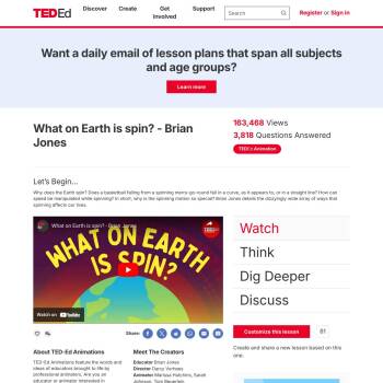 TED-Ed Lesson: Why does the Earth spin? Does a basketball falling from a spinning merry-go-round fall in a curve, as it appears to, or in a straight line? How can speed be manipulated while spinning? In short, why is the spinning motion so special? Brian Jones details the dizzyingly wide array of wa…