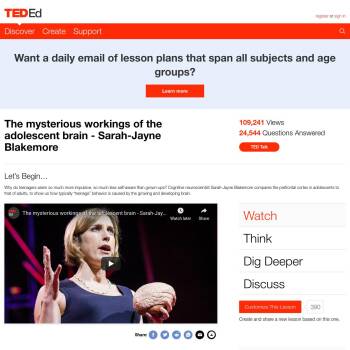 TED-Ed Lesson: Why do teenagers seem so much more impulsive, so much less self-aware than grown-ups? Cognitive neuroscientist Sarah-Jayne Blakemore compares the prefrontal cortex in adolescents to that of adults, to show us how typically “teenage” behavior is caused by the growing and developing…