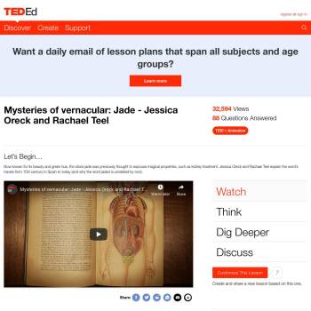 TED-Ed Lesson: Now known for its beauty and green hue, the stone jade was previously thought to espouse magical properties, such as kidney treatment. Jessica Oreck and Rachael Teel explain the word’s travels from 15th century to Spain to today (and why the word jaded is unrelated by root).