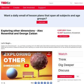 TED-Ed Lesson: Imagine a two-dimensional world -- you, your friends, everything is 2D. In his 1884 novella, Edwin Abbott invented this world and called it Flatland. Alex Rosenthal and George Zaidan take the premise of Flatland one dimension further, imploring us to consider how we would see dim…