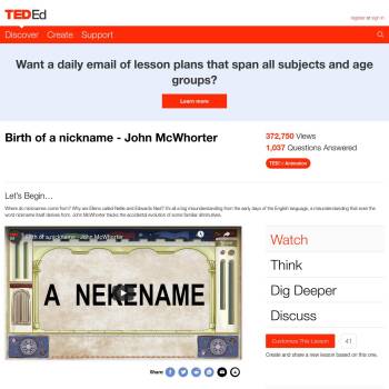 TED-Ed Lesson: Where do nicknames come from? Why are Ellens called Nellie and Edwards Ned? It’s all a big misunderstanding from the early days of the English language, a misunderstanding that even the word nickname itself derives from. John McWhorter tracks the accidental evolution of some famili…
