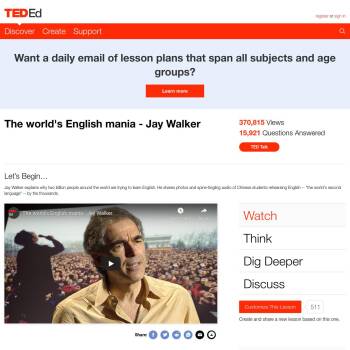 TED-Ed Lesson: Jay Walker explains why two billion people around the world are trying to learn English. He shares photos and spine-tingling audio of Chinese students rehearsing English -- “the world’s second language” -- by the thousands.