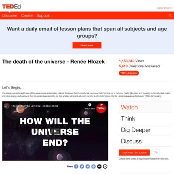 TED-Ed Lesson: The shape, contents and future of the universe are all intricately related. We know that it’s mostly flat; we know that it’s made up of baryonic matter (like stars and planets), but mostly dark matter and dark energy; and we know that it’s expanding constantly, so that all stars w…