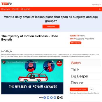 TED-Ed Lesson: Although one third of the population suffers from motion sickness, scientists aren’t exactly sure what causes it. Like the common cold, it’s a seemingly simple problem that’s still without a cure. And if you think it’s bad on a long family car ride, imagine being a motion sick astr…