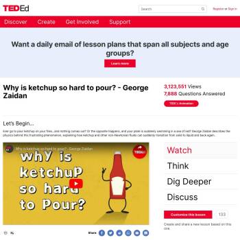 TED-Ed Lesson: Ever go to pour ketchup on your fries…and nothing comes out? Or the opposite happens, and your plate is suddenly swimming in a sea of red? George Zaidan describes the physics behind this frustrating phenomenon, explaining how ketchup and other non-Newtonian fluids can suddenly transit…