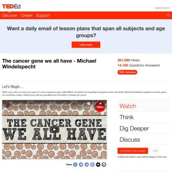 TED-Ed Lesson: Within every cell in our body, two copies of a tumor suppressor gene called BRCA1 are tasked with regulating the speed at which cells divide. Michael Windelspecht explains how these genes can sometimes mutate, making those cells less specialized and more likely to develop into can…