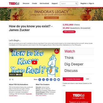 TED-Ed Lesson: How do you know you’re real? Is existence all just a big dream? Has some mad scientist duped us into simply believing that we exist? James Zucker investigates all of these questions (and more) in this mind-boggling tribute to René Descartes’s Meditations on First Philosophy.