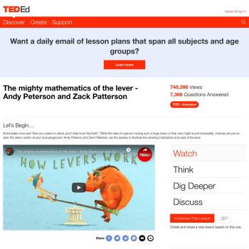 TED-Ed Lesson: Archimedes once said “Give me a place to stand, and I shall move the Earth.” While the idea of a person moving such a huge mass on their own might sound impossible, chances are you’ve seen this idea in action at your local playground. Andy Peterson and Zack Patterson use the seesaw…