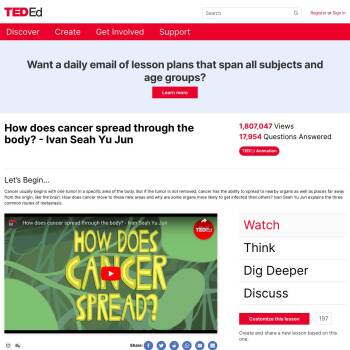 TED-Ed Lesson: Cancer usually begins with one tumor in a specific area of the body. But if the tumor is not removed, cancer has the ability to spread to nearby organs as well as places far away from the origin, like the brain. How does cancer move to these new areas and why are some organs more …