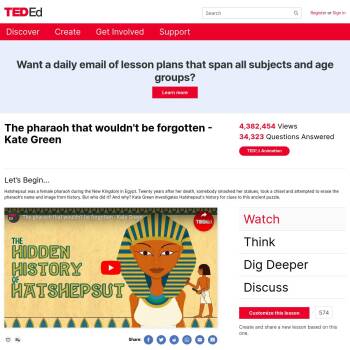 TED-Ed Lesson: Hatshepsut was a female pharaoh during the New Kingdom in Egypt. Twenty years after her death, somebody smashed her statues, took a chisel and attempted to erase the pharaoh’s name and image from history. But who did it? And why? Kate Green investigates Hatshepsut’s history for cl…