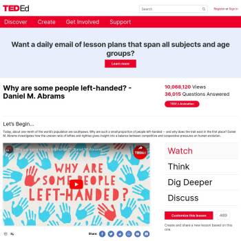 TED-Ed Lesson: Today, about one-tenth of the world’s population are southpaws. Why are such a small proportion of people left-handed -- and why does the trait exist in the first place? Daniel M. Abrams investigates how the uneven ratio of lefties and righties gives insight into a balance between …