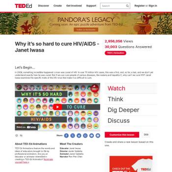 TED-Ed Lesson: In 2008, something incredible happened: a man was cured of HIV. In over 70 million HIV cases, this was a first, and, so far, a last, and we don’t yet understand exactly how he was cured. But if we can cure people of various diseases, like malaria and hepatitis C, why can’t we cure …