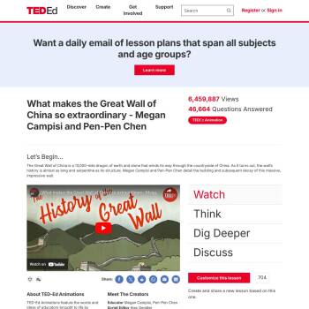 TED-Ed Lesson: The Great Wall of China is a 13,000-mile dragon of earth and stone that winds its way through the countryside of China. As it turns out, the wall’s history is almost as long and serpentine as its structure. Megan Campisi and Pen-Pen Chen detail the building and subsequent decay of …