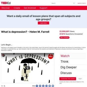 TED-Ed Lesson: Depression is the leading cause of disability in the world; in the United States, close to ten percent of adults struggle with the disease. But because it’s a mental illness, it can be a lot harder to understand than, say, high cholesterol. Helen M. Farrell examines the symptoms and t…