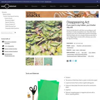 Some animals blend in with their surroundings so well that they’re nearly impossible to see. Only when these animals move can you detect their presence and shape. With this Snack, you can compare what you see when a camouflaged figure remains still to what you see when the figure is moving.