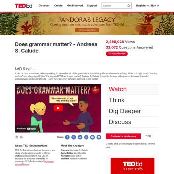 TED-Ed Lesson: It can be hard sometimes, when speaking, to remember all of the grammatical rules that guide us when we’re writing. When is it right to say “the dog and me” and when should it be “the dog and I”? Does it even matter? Andreea S. Calude dives into the age-old argument between lingui…