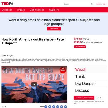 TED-Ed Lesson: North America didn’t always have its familiar shape, nor its famed mountains, canyons, and plains: all of that was once contained in an unrecognizable mass, buried deep in Rodinia, a huge supercontinent that lay on the face of the Earth. Peter J. Haproff explains how it took milli…