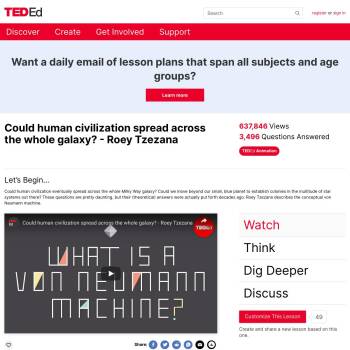 TED-Ed Lesson: Could human civilization eventually spread across the whole Milky Way galaxy? Could we move beyond our small, blue planet to establish colonies in the multitude of star systems out there? These questions are pretty daunting, but their (theoretical) answers were actually put forth …