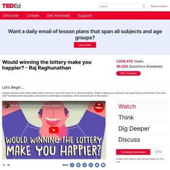 TED-Ed Lesson: Imagine winning a multi-million dollar lottery tomorrow. If you’re like many of us, you’d be ecstatic, unable to believe your good luck. But would that joy still be there a few years later? Raj Raghunathan describes a phenomenon called hedonic adaptation, which may shed light on t…