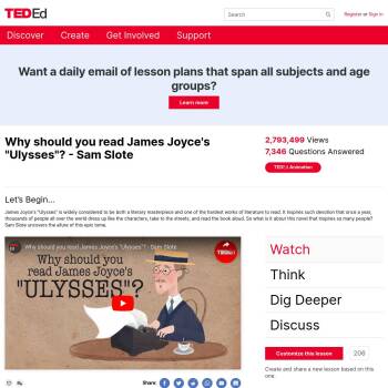 TED-Ed Lesson: James Joyce’s “Ulysses” is widely considered to be both a literary masterpiece and one of the hardest works of literature to read. It inspires such devotion that once a year, thousands of people all over the world dress up like the characters, take to the streets, and read the boo…