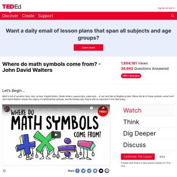 TED-Ed Lesson: Math is full of symbols: lines, dots, arrows, English letters, Greek letters, superscripts, subscripts ... it can look like an illegible jumble. Where did all of these symbols come from? John David Walters shares the origins of mathematical symbols, and illuminates why they’re stil…