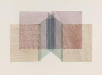 The artwork titled Sarabande is by Caroline Stone (b. 1936). The Smithsonian American Art Museum describes it as an abstract allegory of music—presumably an allegory of the saraband (or sarabande). Do students see in this work a relationship between an A and a B? What is the relationship between the violet squares and the tan squares? Or the two squares that cross as they recede?