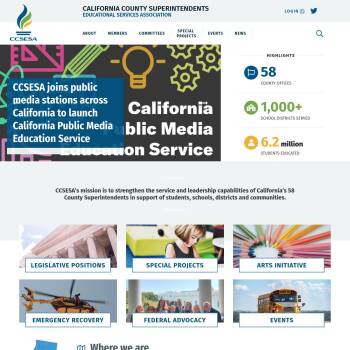 CCSESA is a network of 11 county educational service regions in California that provide support for schools in curriculum and instruction personnel administration and pupil instruction and other specialized direct educational programs.
