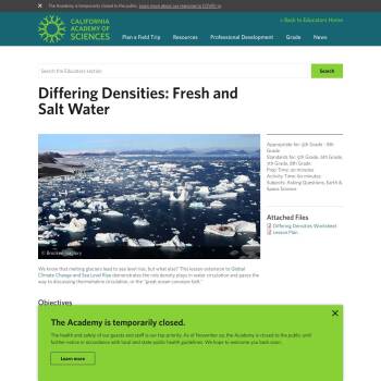 We know that melting glaciers lead to sea level rise, but what else? This lesson extension to Global Climate Change and Sea Level Rise demonstrates the role density plays in water circulation and paves the way to discussing thermohaline circulation, or the "great ocean conveyor belt."