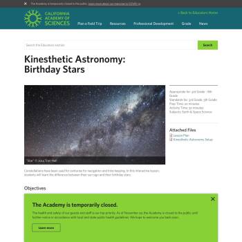 Constellations have been used for centuries for navigation and time keeping. In this interactive lesson, students will learn the difference between their sun sign and their birthday stars.