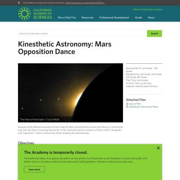 Because of the different amounts of time it take for Mars and the Earth to each orbit the sun, it sometimes may look like Mars is traveling backwards. In this interactive lesson, students will learn what "retrograde" and "opposition" means in astronomy while modeling this phenomenon.