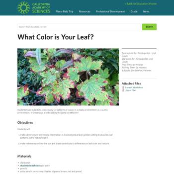 Students head outside to look closely for patterns of leaves in a shady environment vs. a sunny environment. In what ways are the colors the same or different?