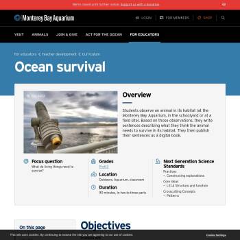 Students observe an animal in its habitat (at the Monterey Bay Aquarium, in the schoolyard or at a field site). Based on those observations, they write sentences describing what they think the animal needs to survive in its habitat. They then publish their sentences as a digital book.