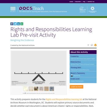 Rights and Responsibilities Learning Lab Pre-visit Activity