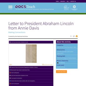 Letter to President Abraham Lincoln from Annie Davis