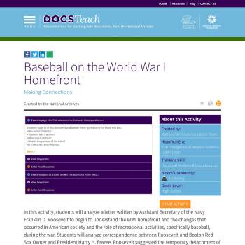 Baseball on the World War I Homefront