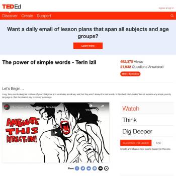 TED-Ed Lesson: Long, fancy words designed to show off your intelligence and vocabulary are all very well, but they aren’t always the best words. In this short, playful video Terin Izil explains why simple, punchy language is often the clearest way to convey a message.