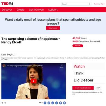 TED-Ed Lesson: Cognitive researcher Nancy Etcoff looks at happiness -- the ways we try to achieve and increase it, the way it’s untethered to our real circumstances, and its surprising effect on our bodies.