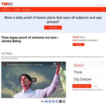 TED-Ed Lesson: Photographer James Balog shares new image sequences from the Extreme Ice Survey, a network of time-lapse cameras recording glaciers receding at an alarming rate, some of the most vivid evidence yet of climate change.